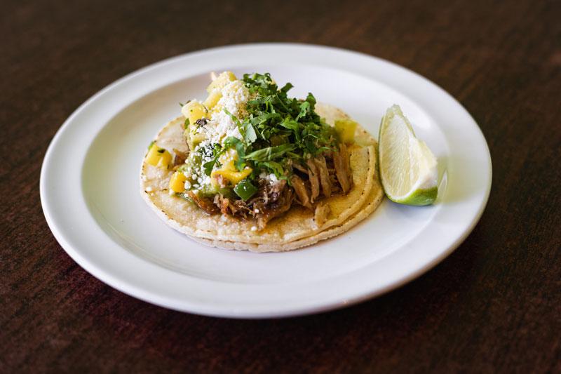 shredded duck topped with mango, jalapenos, salsa verde, cilantro and cotija cheese