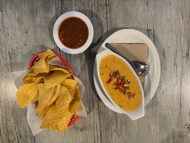 Two fire roasted Poblano Peppers stuffed with a sweet corn relish and choice of chili lime chicken, shredded beef, or keep vegetarian Comes with rice and beans