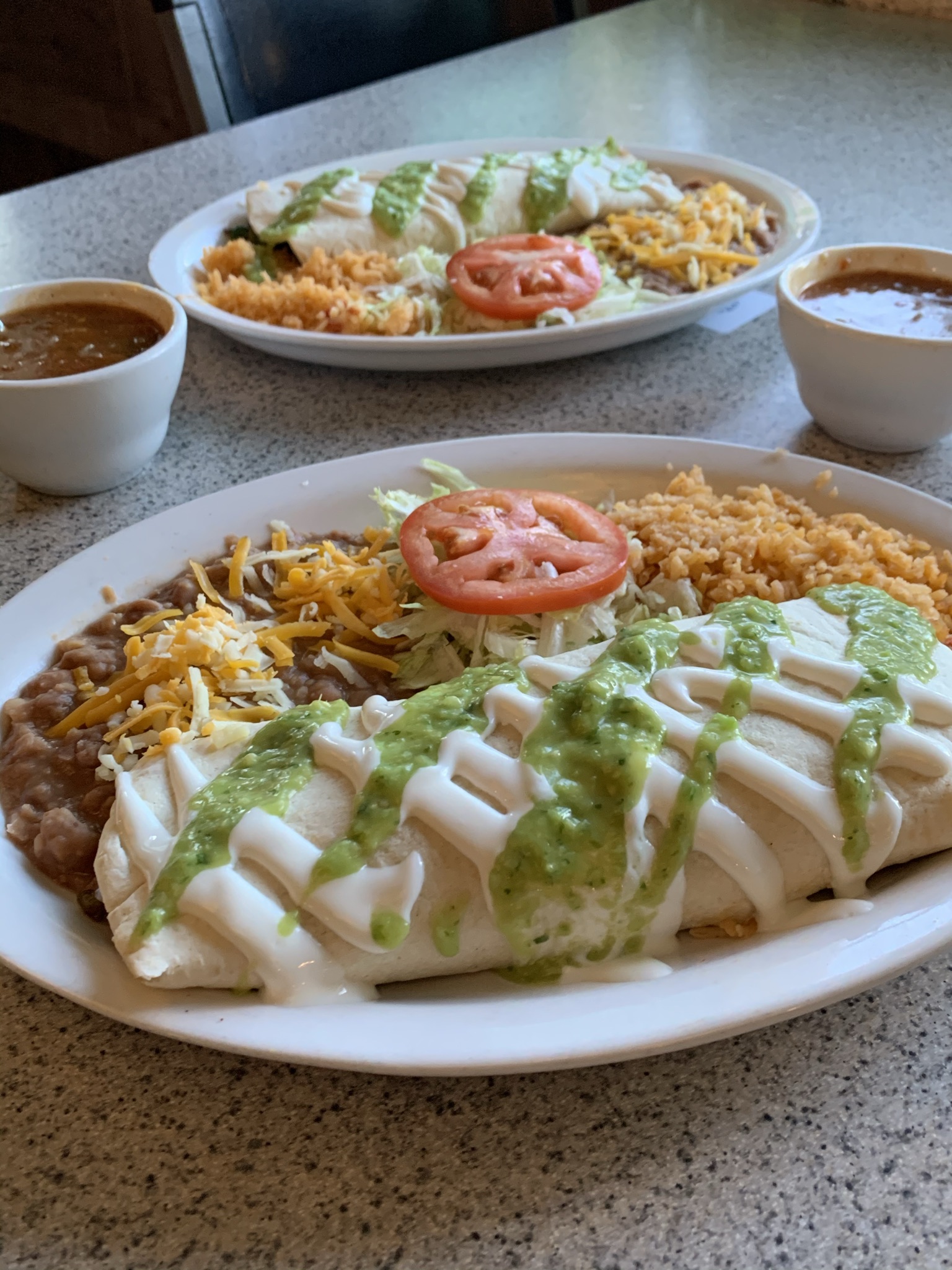 Two crispy rellenos choose from cheese, ground beef, Shredded beef or Chicken. Served with rice and beans