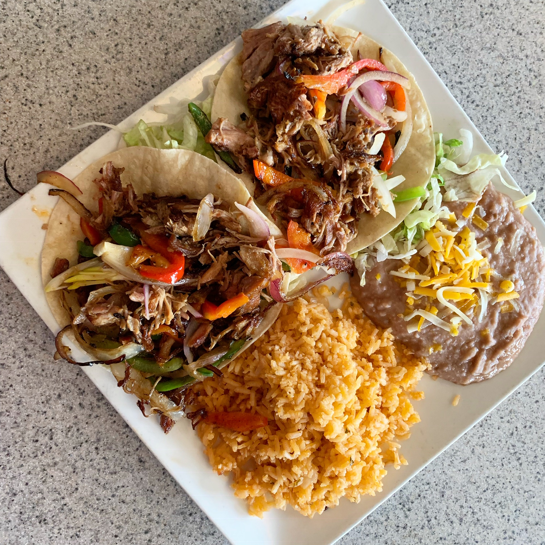 Flavorful and crispy chunks of braised pork served with guacamole and pico de gallo. Served with rice and beans