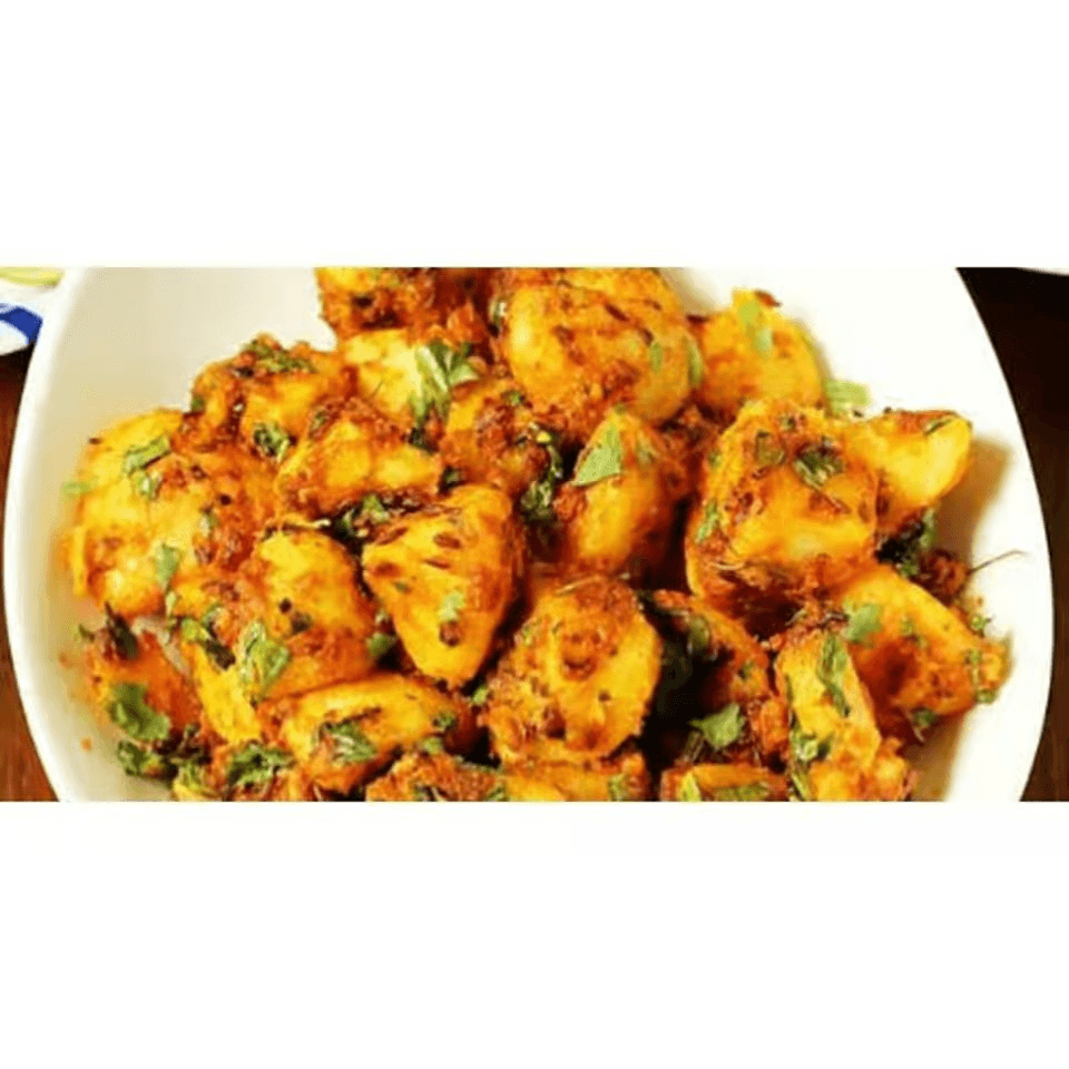 Spiced pan-fried potatoes with aromatic jeera cumin and a hint of turmeric, herbs & spices