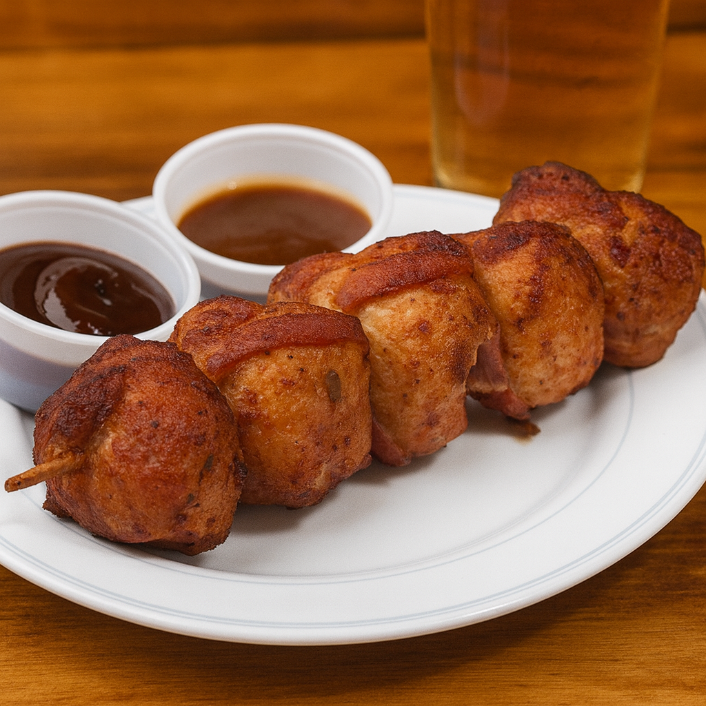 Chicken, jalapenos, bacon, skewered