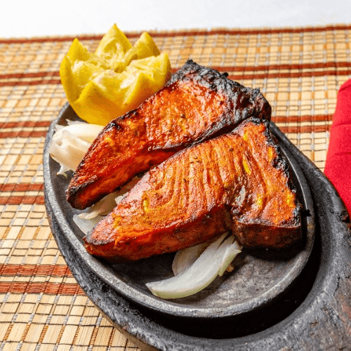 Tandoori fish cooked in a delightfully flavored sauce. Note: If you enter a special request that requires or adds extra ingredients, the restaurant may apply an additional charge of up to $5 without prior notice. If the cost exceeds $5, the restaurant will contact you for approval before proceeding.