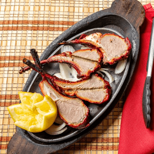 Rack of lamb marinated and grilled over charcoal. Note: If you enter a special request that requires or adds extra ingredients, the restaurant may apply an additional charge of up to $5 without prior notice. If the cost exceeds $5, the restaurant will contact you for approval before proceeding.