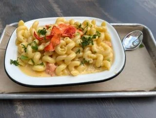 House-made cheese sauce, cavatappi pasta noodles, a touch of parmesan and loads of fresh Picked Main Lobster