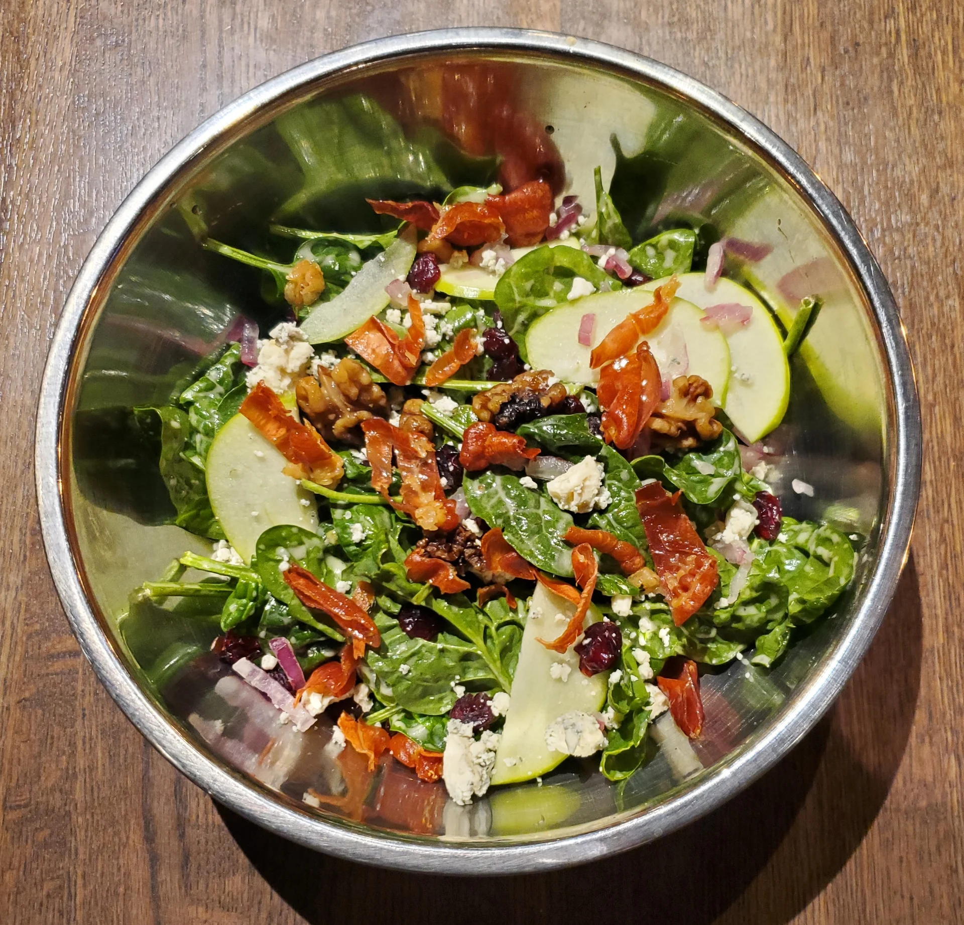 crispy prosciutto, red onion, apple, blue cheese, pecans and craisins tossed in a house made apple cider vinaigrette