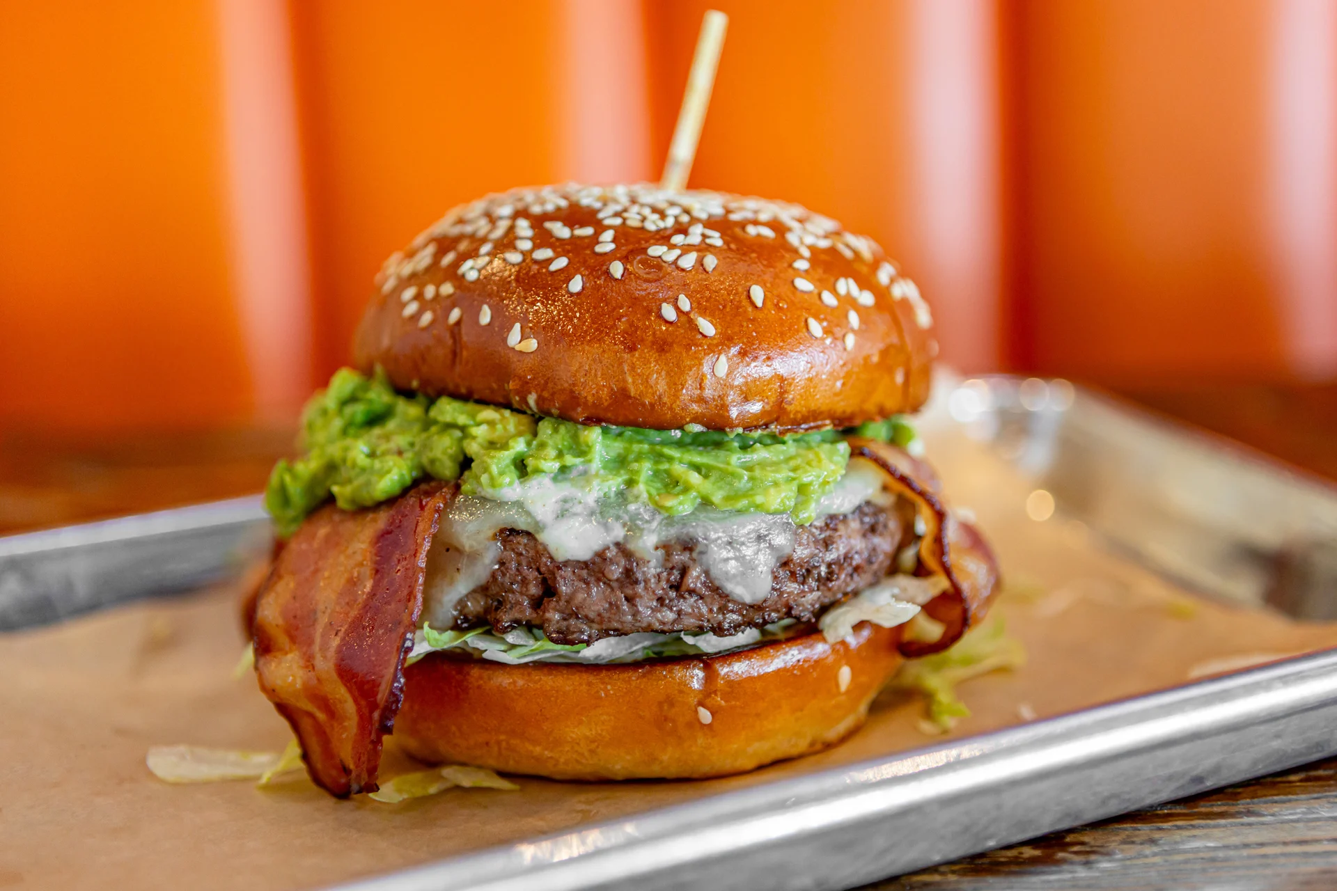 Angus Beef*, Pecanwood Smoked Bacon, sharp White Cheddar Cheese, Guacamole, Lettuce & our House-made Roasted Garlic Aioli