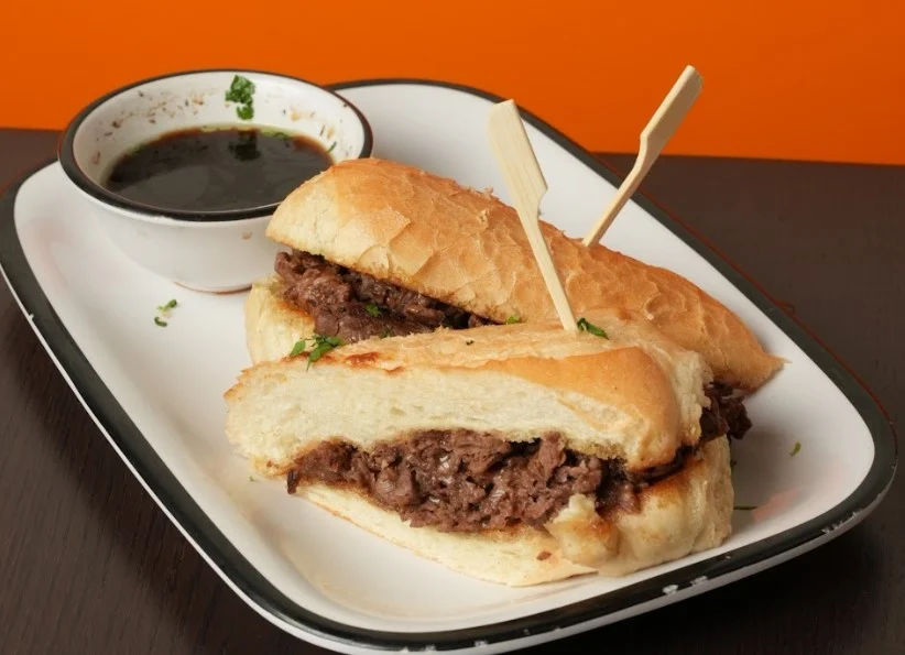 shaved ny strip and swiss cheese served with housemade horseradish, au jus for dipping and french fries.