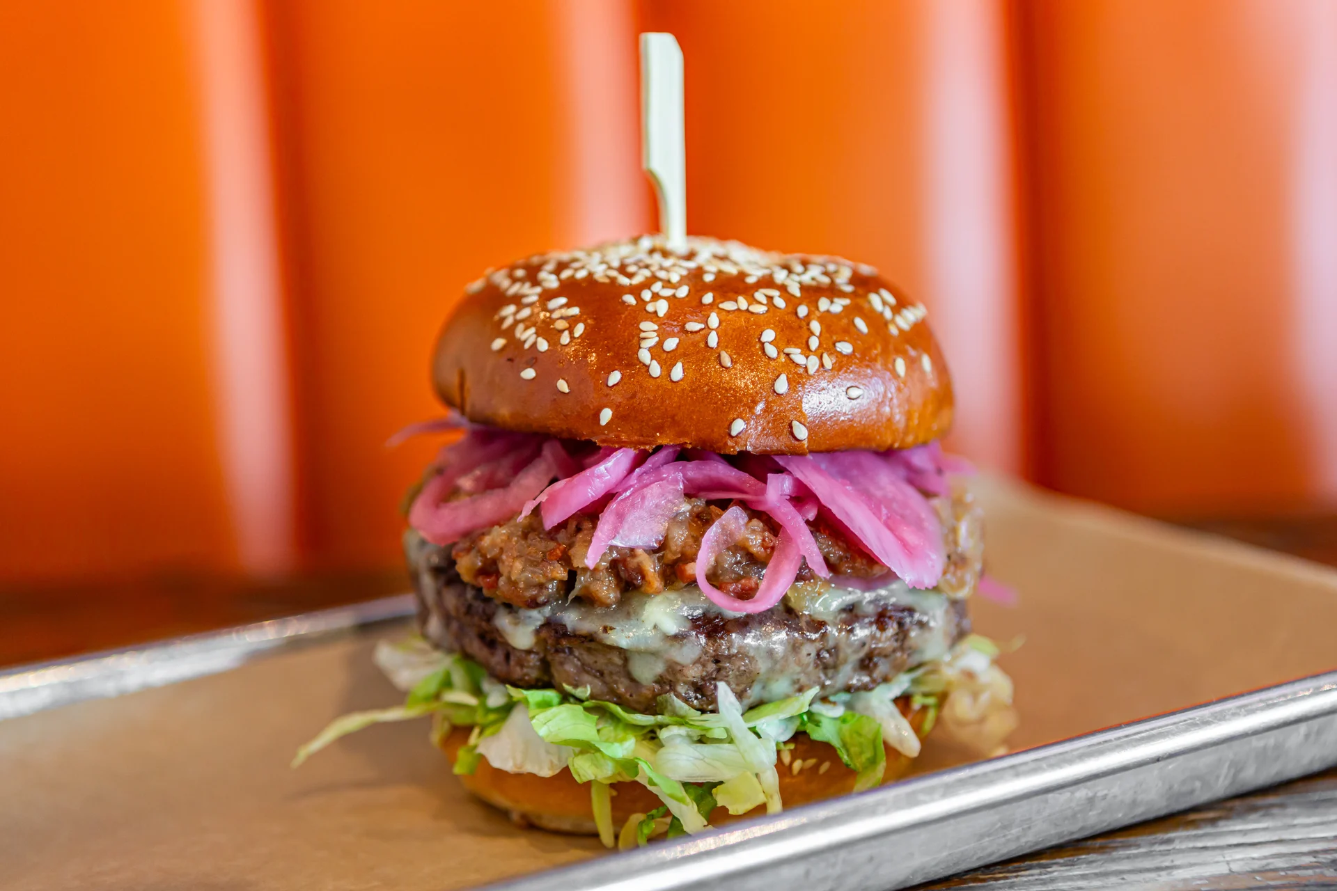 Angus Beef*, Gruyére Cheese, Bacon Onion Jam, Pickled Red Onions, Lettuce & our House-made Roasted Garlic Aioli