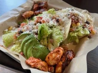 al pastor chicken, crisp romaine, roasted corn & black bean salsa, avocado, pico de gallo & cotija cheese tossed in our house-made Jalapeño agave vinaigrette & served in a tortilla bowl *can substitute for chicken for no additional cost.