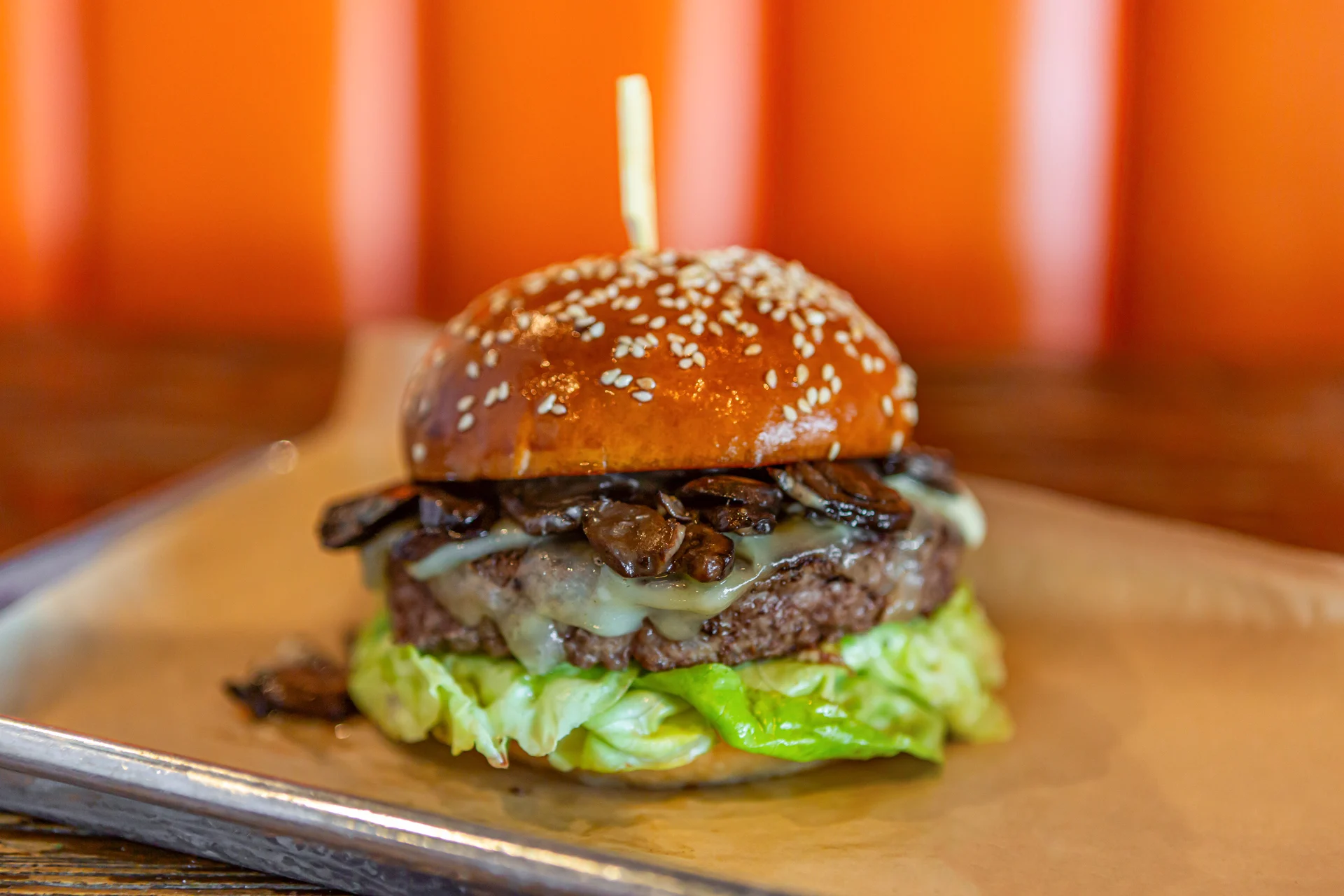 angus beef*, sautéed crimini mushrooms, arugula, topped with swiss cheese & roasted garlic aioli