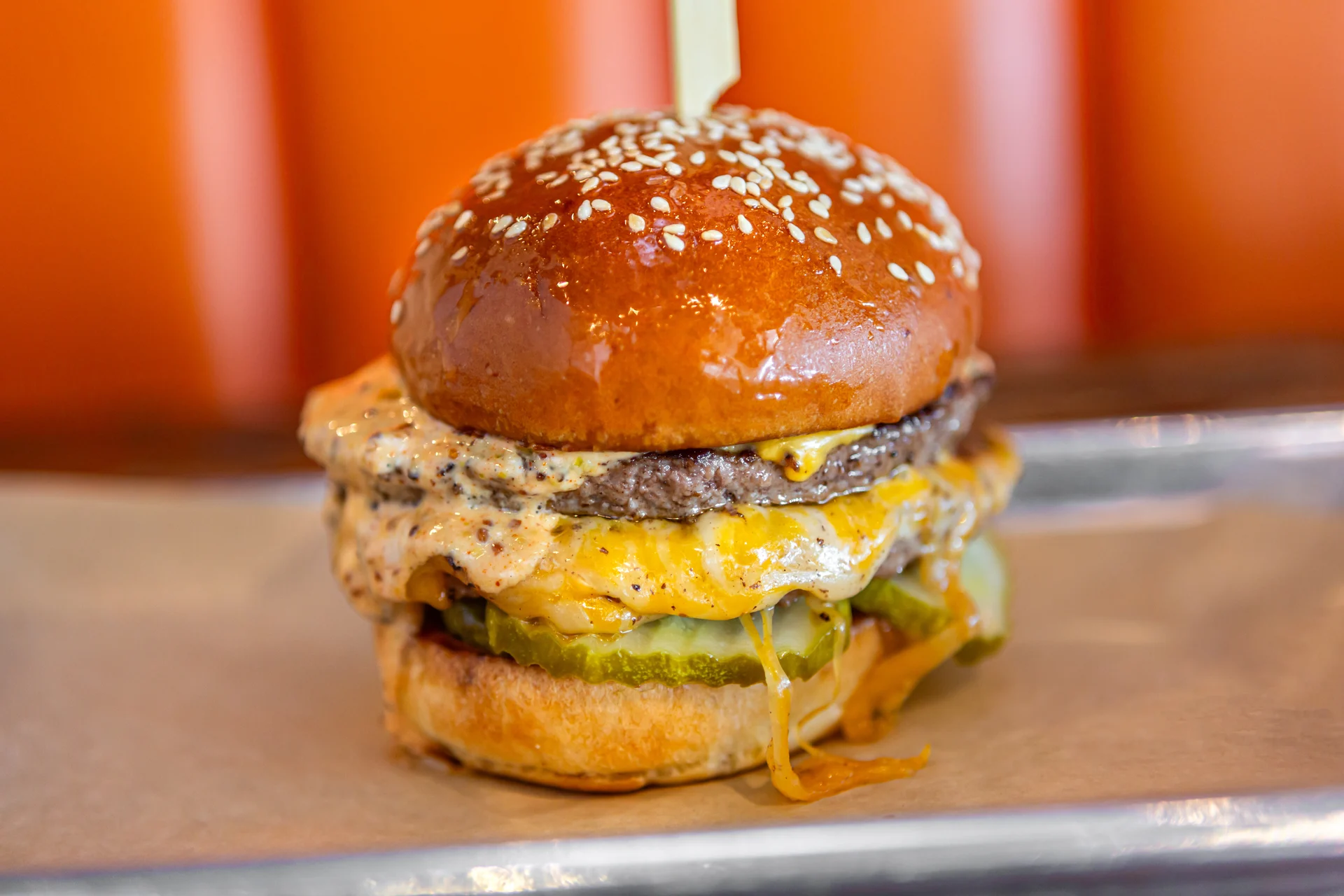 2 quarter pound angus beef* patties, cheddar, swiss & american cheese, pickles & our 5280 sauce