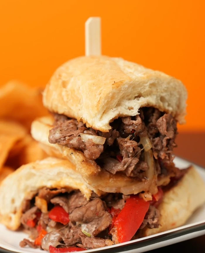 Shaved NY Strip, House made cheese sauce and sautéed peppers and onions