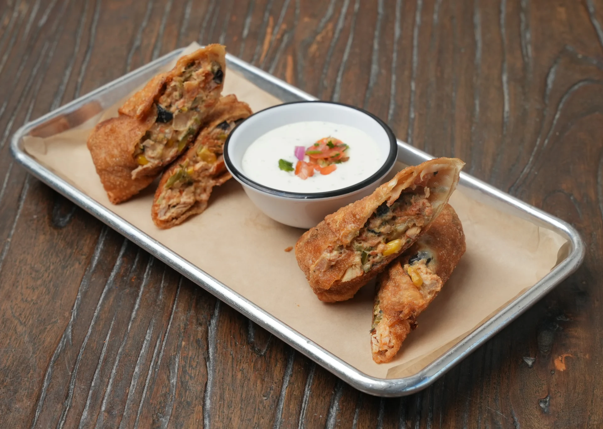 Al Pastor Chicken, Cheddar and Jalapeno Cream Cheese, Black Bean and Roasted Corn Salsa