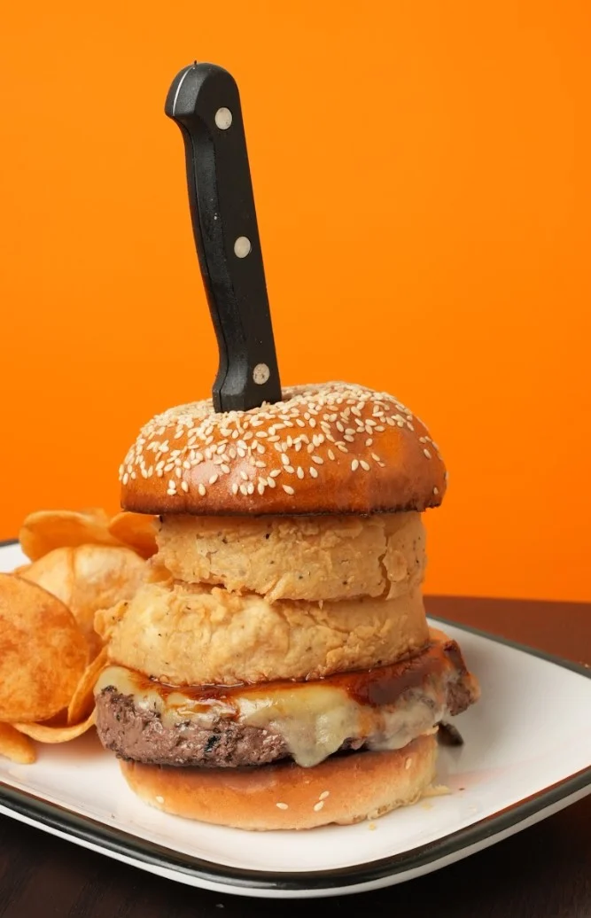 colorado raised prime wagyu beef*, sharp white cheddar, giant house made onions rings and house made 5280 steak sauce.