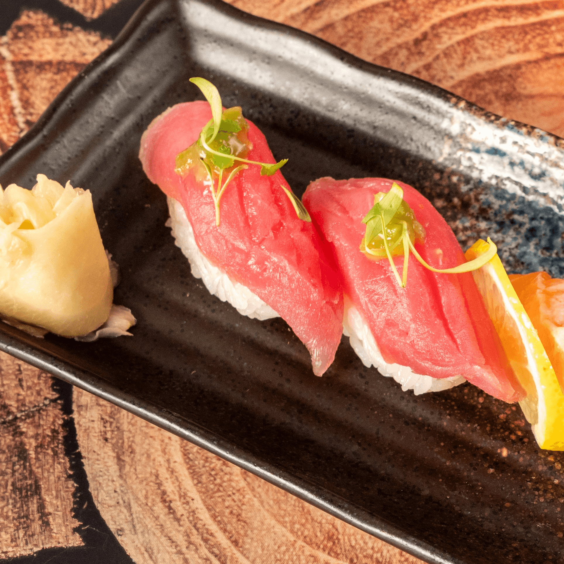 Gluten Free. Salmon, yellowtail & avocado, topped with tuna