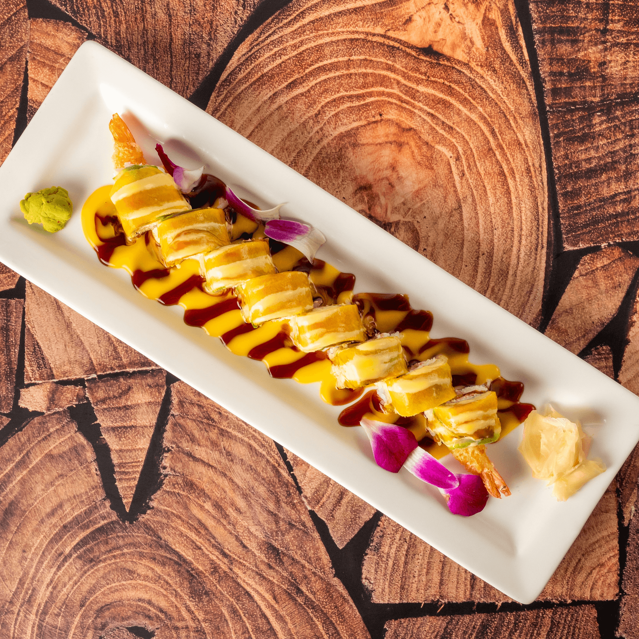 Sweet potato, avocado, mango, cucumber & cream cheese,Eel sauce & special sauce.
