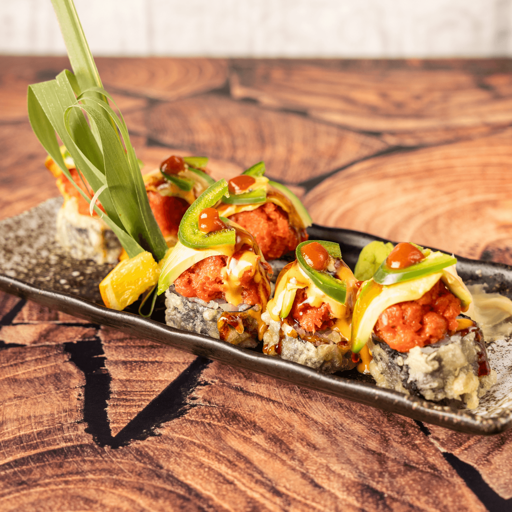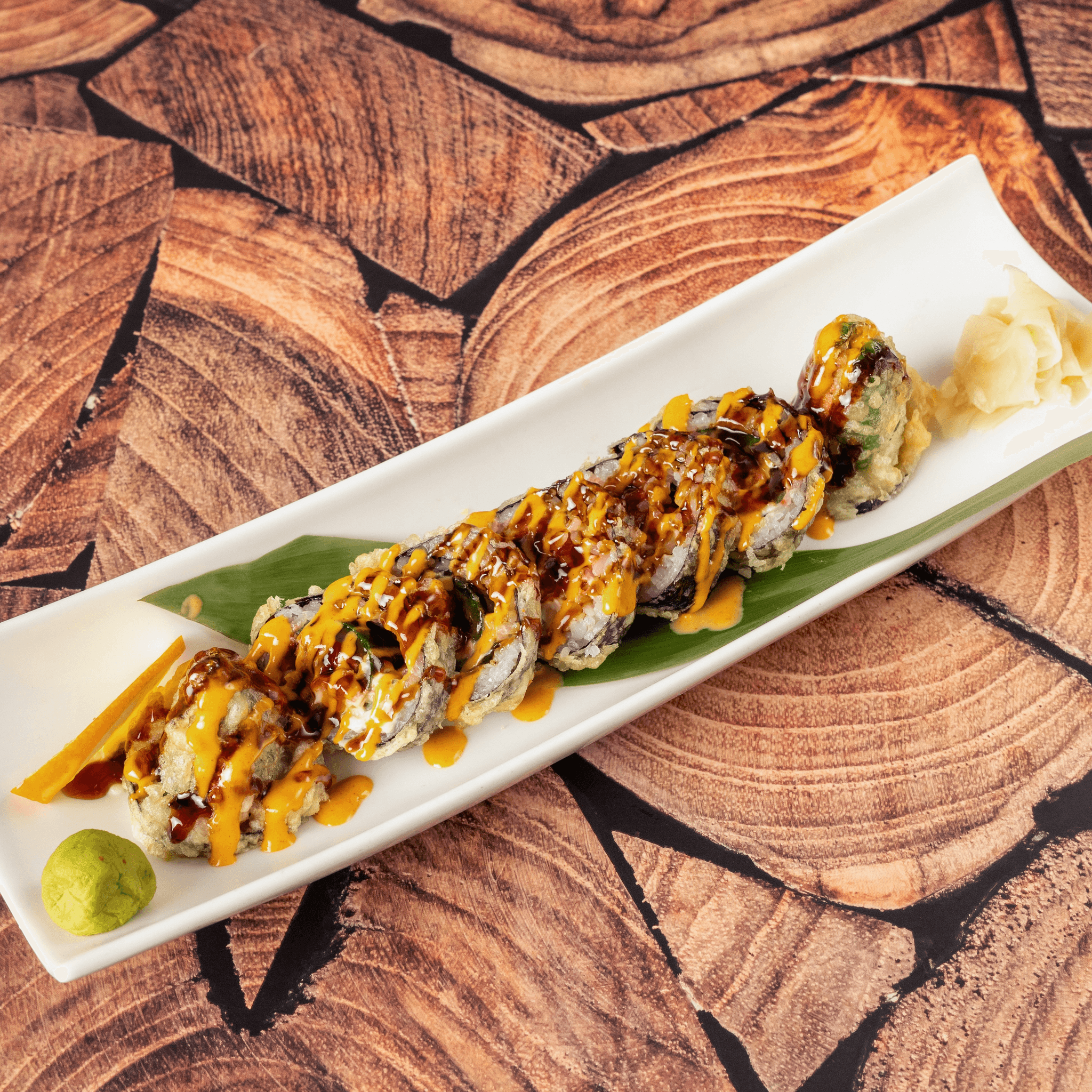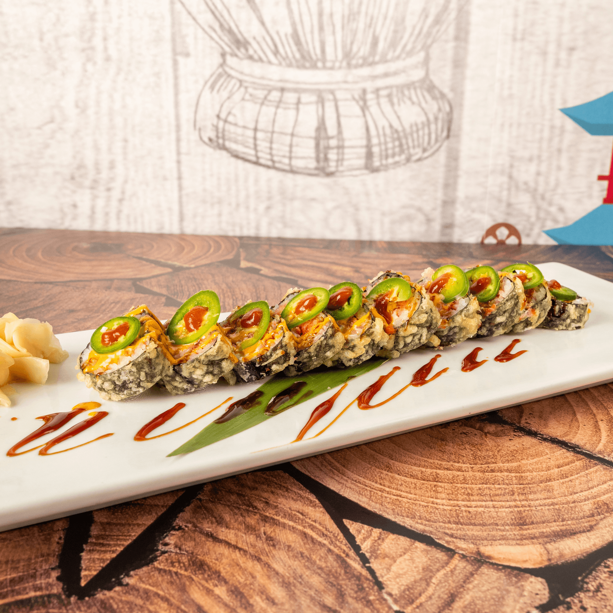 Spicy tuna, cream cheese, avocado, deep fried, and topped with jalapeño,Eel Sauce,Spicy mayo,Sriracha