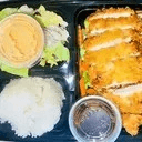 Breaded pork with panko crumbs, and deep-fried. Served with miso soup, house salad, and steamed rice.