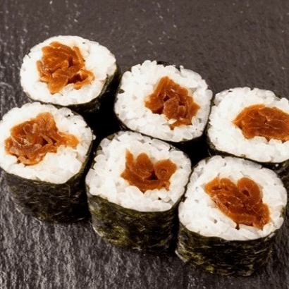 Spicy tuna roll, spicy salmon roll, Alaska roll, Philadelphia roll, California roll, sweet potato roll, AAC roll, and unagi roll