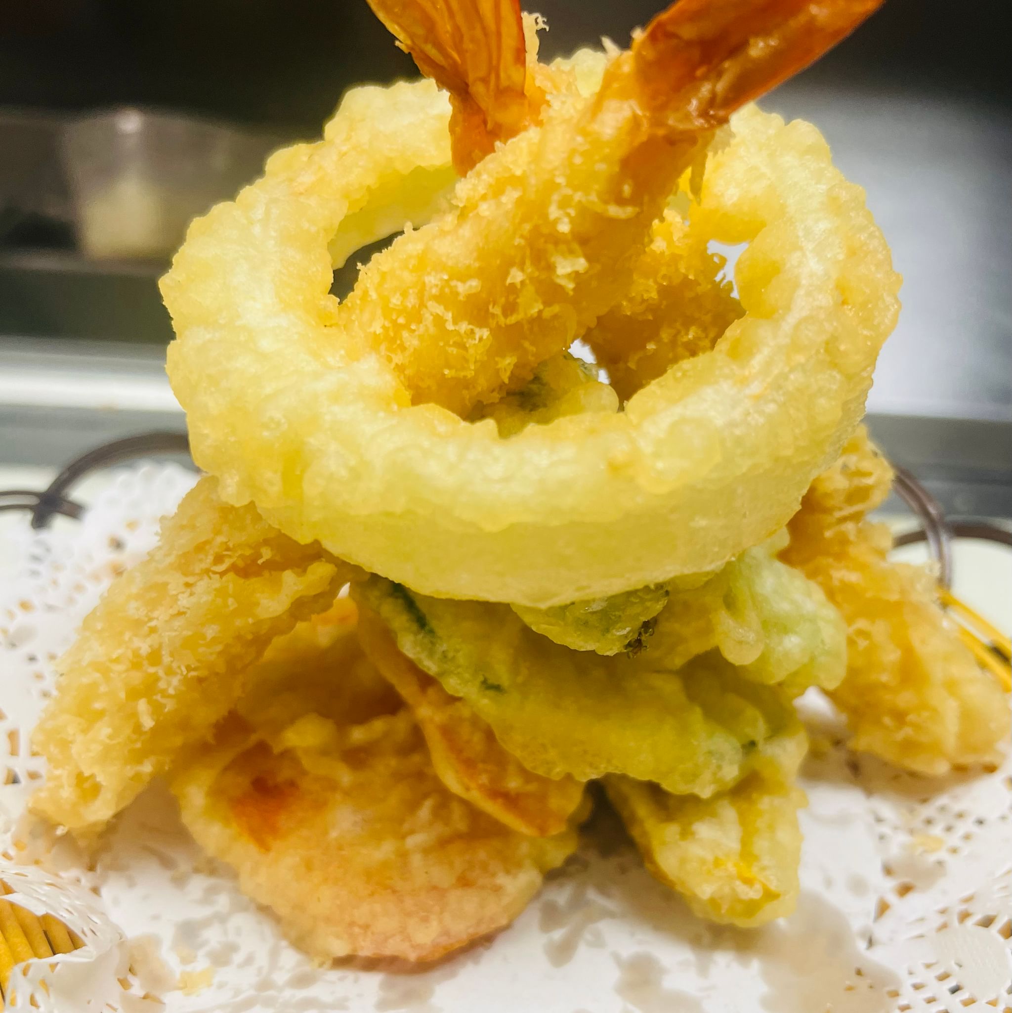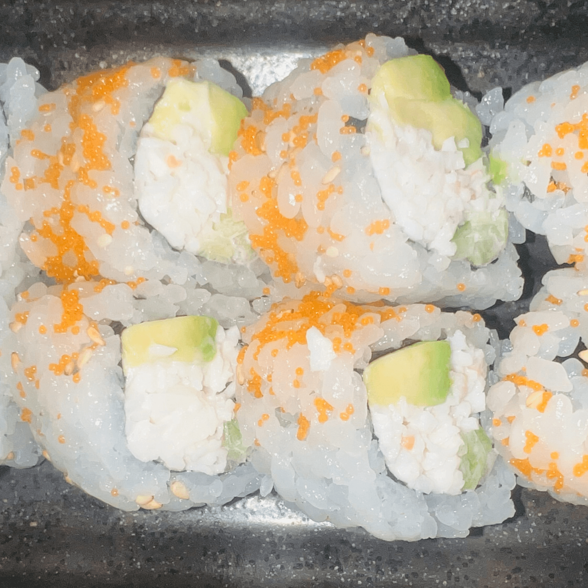 Salmon, crab meat, avocado, tuna, white fish,Avocado & flying fish roe, deep fried with tempura batter.
