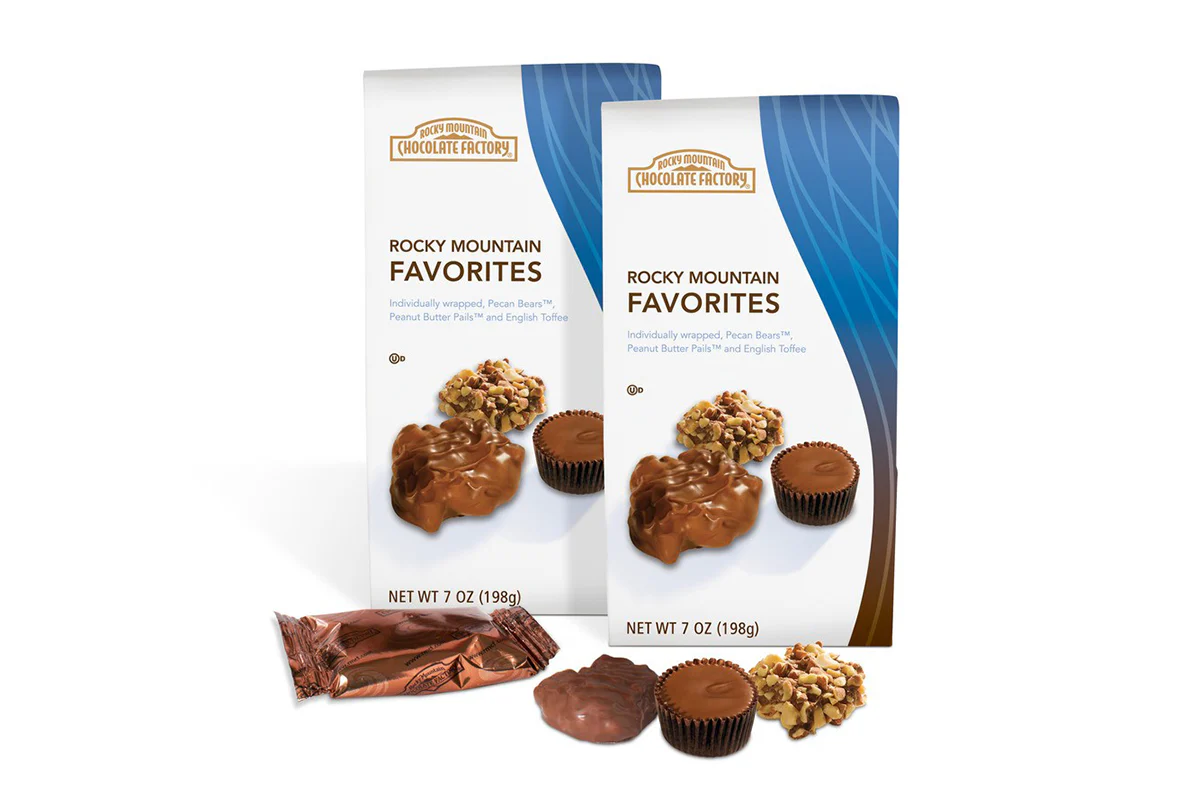 individually wrapped milk chocolate Peanut Butter Pails™, Pecan Bears™ and English toffee bite-sized pieces. 7.5 oz.